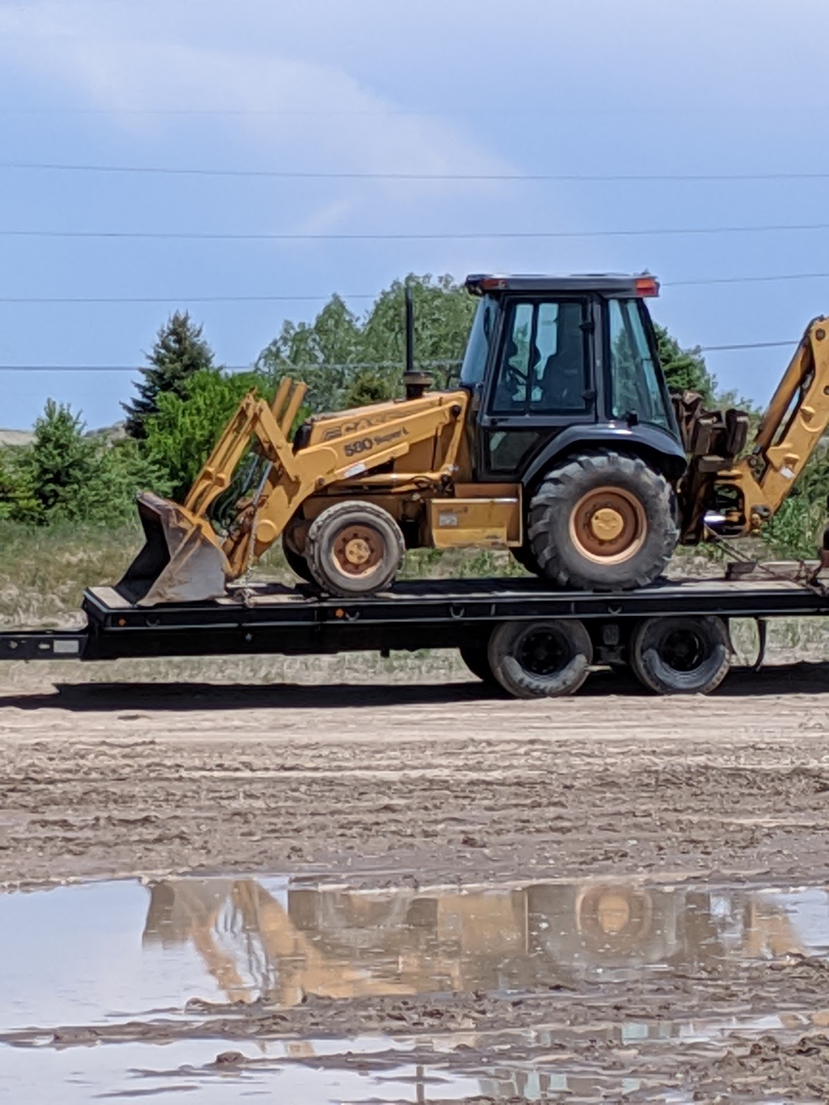 After he filled his dump truck full of sand, he tractored over, got a chain, and laid on his belly, scooched far enough under the van to connect the chain (mud washes right out of clothes right? Plus, I mean, those were his work clothes. He wasn't planning keeping them dry and clean anyway, I'm sure. Sorry wife of guy!!), and then hopped into the tractor and pulled the van right out. No biggie.